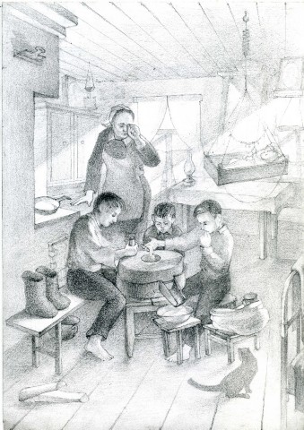 Козлов В.С. создал целую серию графических работ, иллюстрирующих рассказы-воспоминания из своей жизни. Многие из рисунков ценны тем, что показывают жизнь не только его, но и брединцев в послевоенные годы.