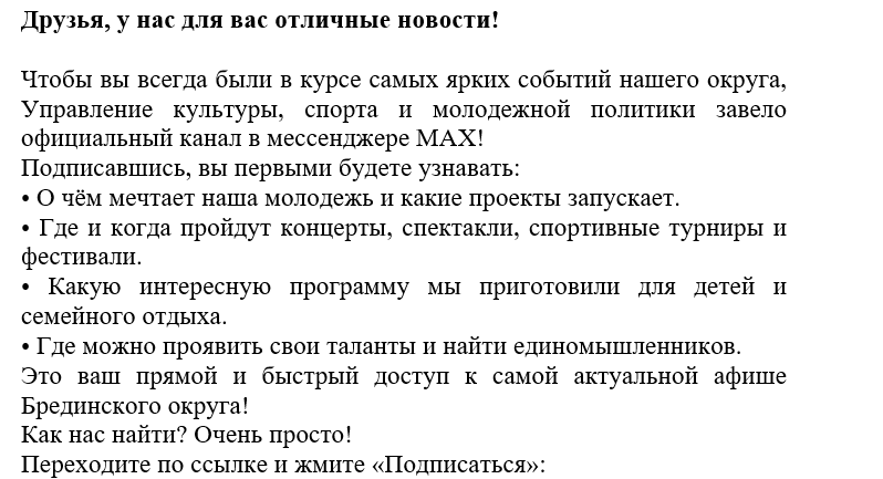 Официальный канал Управления в МАХ ( https://max.ru/id7427004754_gos )