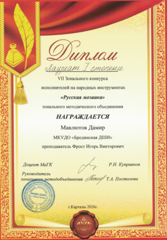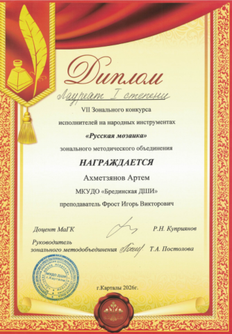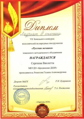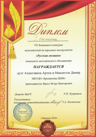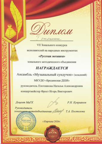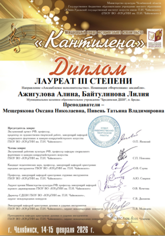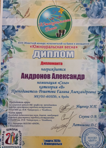 Брединская ДШИ на пьедестале конкурса им. Аристова