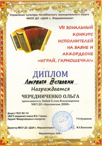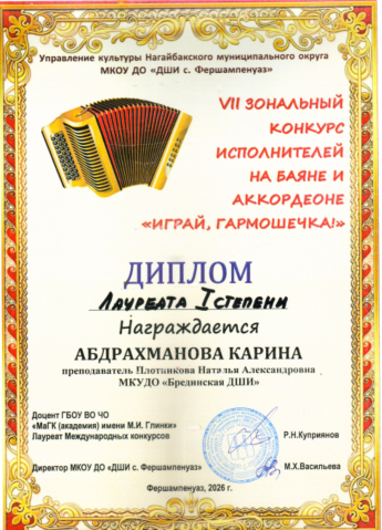 III Зональный конкурс исполнителей на баяне, аккордеоне среди учащихся ДШИ "Играй, гармошечка"