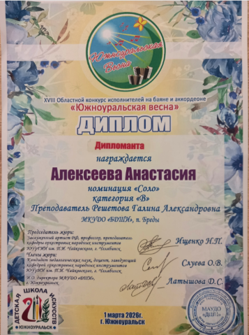XVIII областной конкурс исполнителей на баяне и аккордеоне "Южноуральская весна"