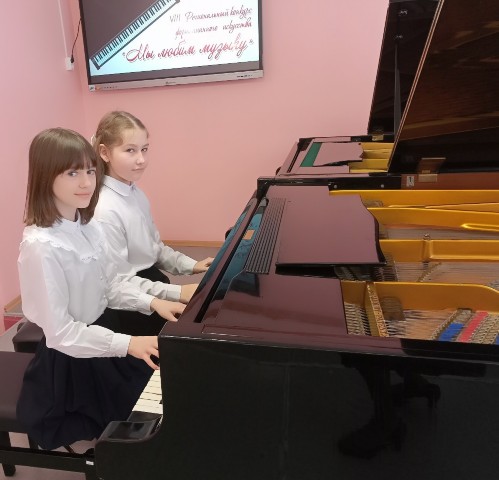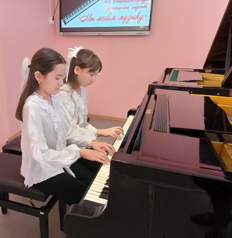Нашу школу представляли два фортепианных дуэта: Шадчинова Александра – Хамитова Полина и Байтулинова Лилия - Ажигулова Алина (преподаватели Мещерякова О.Н. и Пивень Т.В.).