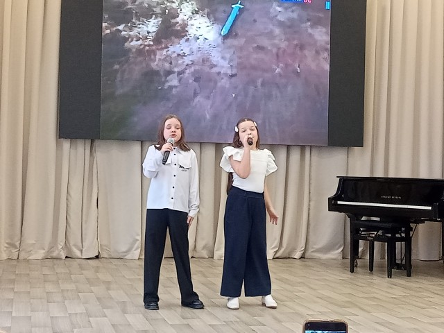 В концерте приняли участие хор 1-8 классов. Солисты: Виктория Баданина, Варвара Сухенко, Дилара Колмакова, Христина Матвеева, Арина Марадудина, Виктория Маштанова, Амина Ибраева. Стихи читала Елизавета Иванова.