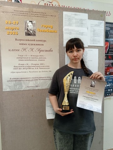 В этом году Елизавета впервые побывала на очном этапе конкурса. Ей за 2 дня предстояло выполнить этюд фигуры с натуры и живописный натюрморт. И вот радость: Елизавета – Лауреат III степени! Это результат кропотливого труда ученицы и преподавателя. От души поздравляем Елизавету и желаем дальнейшего роста и успехов в творчестве!